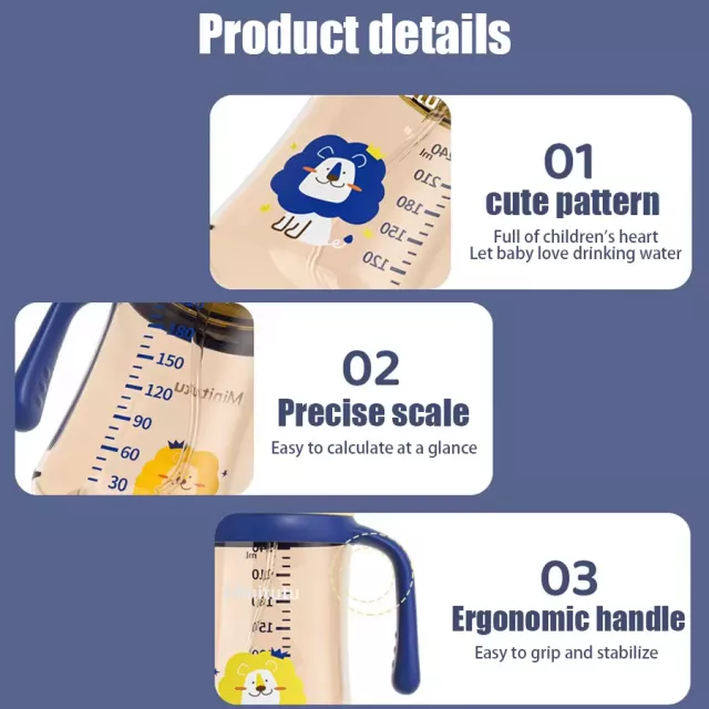 This Cartoon Lion Baby Bottle is perfect for babies over 6 months old who are transitioning to using a straw. Its innovative design makes it great for daily use, whether at home or on the go. The leak-proof feature ensures that your baby can drink freely without worrying about spills, making it a great companion for playdates, trips, and everyday adventures. Plus, it’s easy to clean, so you can keep it ready for use anytime your baby needs a drink.