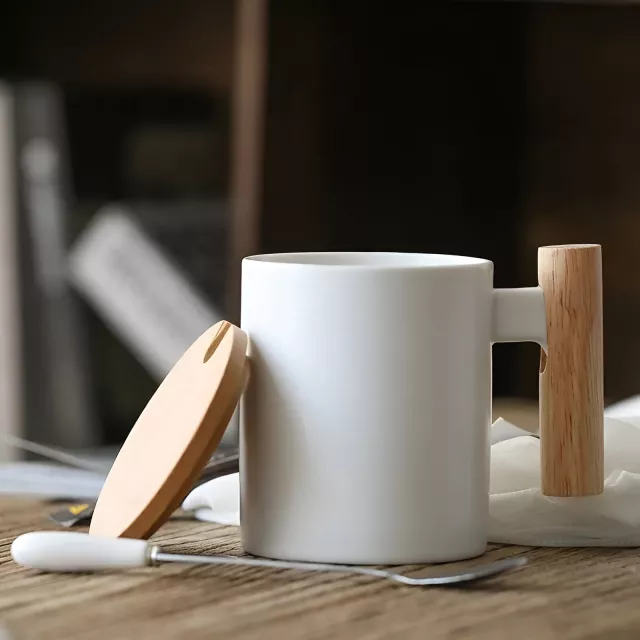 What a gem! This ceramic mug with its wooden handle and lid has become my go-to for morning coffee. The heat insulation is top-notch, it keeps my drink hot for longer. And the 10.5 oz size? Just perfect. It's comfortable to hold and the lid prevents any accidental spillage - so no more coffee stains on my work papers! Aesthetically pleasing too, I've received many compliments from colleagues already .