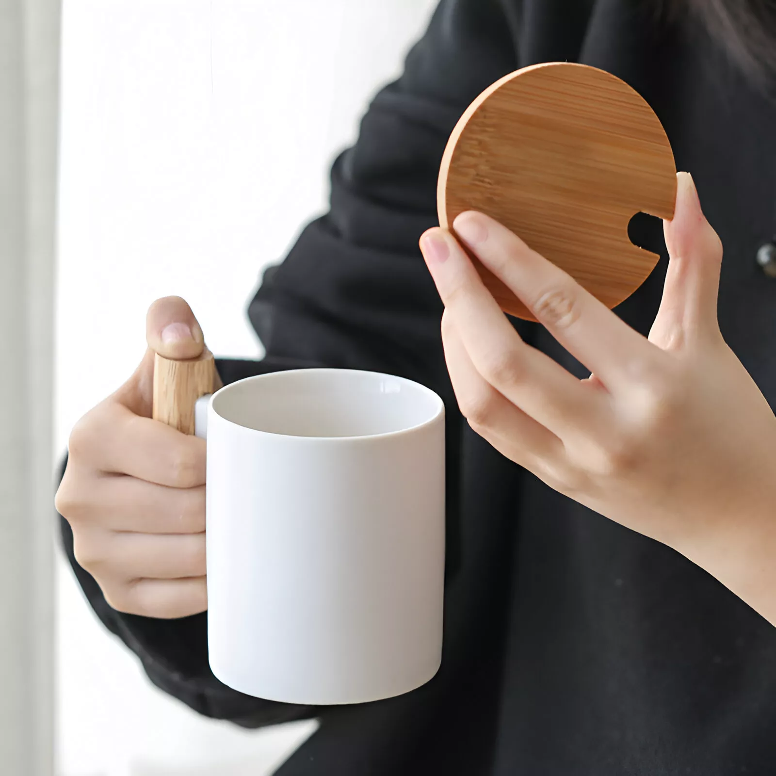Perfect for your morning coffee, afternoon tea, or a cozy evening hot chocolate, this mug is thoughtfully designed to enhance your daily rituals. The matching wooden lid keeps your drink warm longer and doubles as a coaster when needed, while the ergonomic handle stays cool to the touch, giving you a comfortable grip every time. Whether you’re treating yourself or looking for a charming gift for a loved one, this ceramic mug is sure to delight.