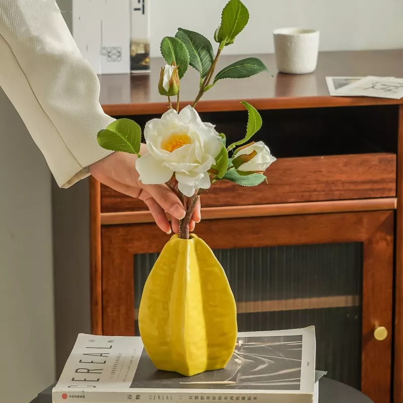 This star fruit ceramic vase shines best during seasonal décor updates, holiday gatherings, or whenever you want to refresh your interior with something unique. It’s perfect for everyday elegance or special occasions like dinner parties, where it can serve as a striking centerpiece. Even when empty, its sculptural form brings life and creativity to your space.