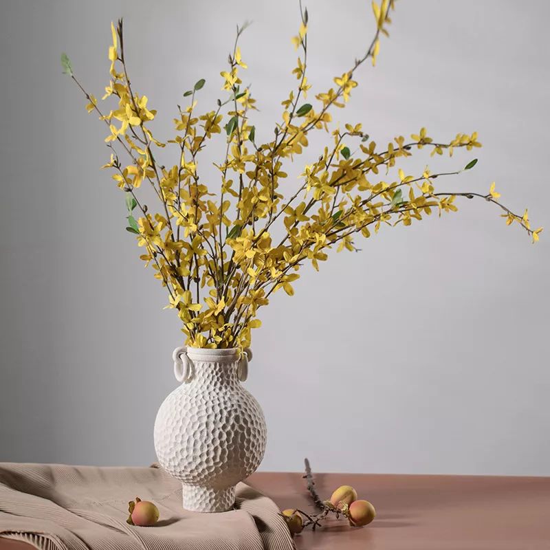 Discover a piece that combines modern style with vintage charm — the Ceramic White Ring Handle Vase is more than just a flower holder; it’s a design statement. Handcrafted with care and precision, this porcelain vase brings a serene, minimalist beauty to any space. Whether you fill it with fresh blooms, dried flowers, or let it stand on its own, it effortlessly adds character to your décor.