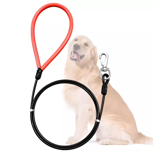 I never thought I'd be writing a review about a dog leash but here I am because this product truly deserves recognition! My puppy loves chewing everything including his leashes so finding one that can resist his sharp teeth was crucial for us. We have tried multiple brands before but none lasted longer than two weeks until we came across this steel wire dog lead! Not only does he not manage to bite through it but also seems less interested in doing so maybe due to its texture or taste? Who knows... But what matters is that our walks are worry-free now and much more enjoyable without having to constantly pull away plastic pieces from his mouth!