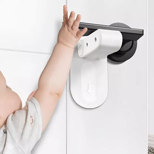 Crafted from high-quality ABS plastic, this lever lock is durable, reliable, and built to last through daily use. Its hidden button mechanism ensures that only adults can open the door, while curious little hands stay safely on the other side. With its smart design and user-friendly operation, this lock doesn’t interfere with the normal use of the door for adults—it unlocks with just one press and rotates 180° for easy switching.