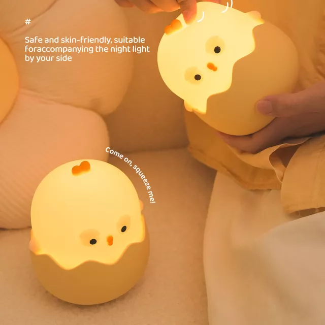 Make nighttime brighter, safer, and more delightful with this adorable eggshell chick night light. Its playful design, smart features, and gentle glow make it a perfect fit for every home with children—or anyone who loves charming, functional decor. Add a warm, colorful light to your life today—just tap and glow!