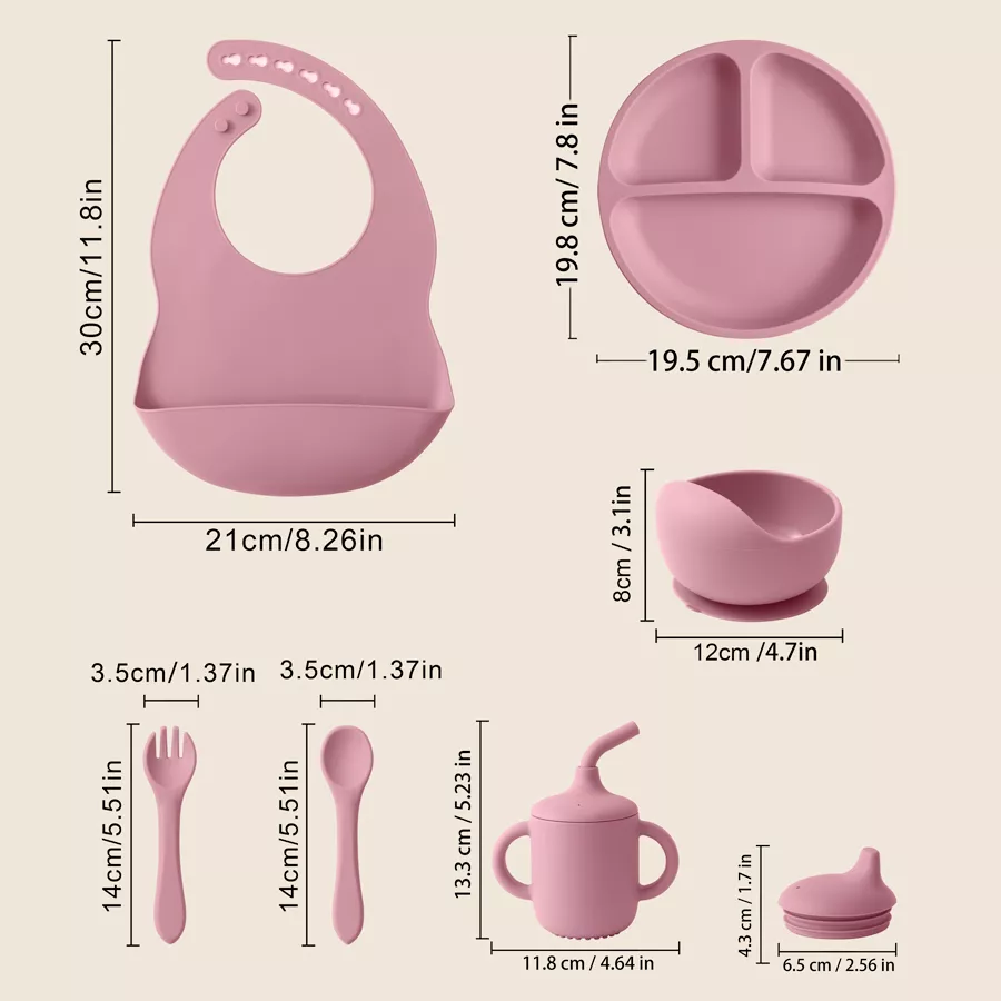 This 6-piece silicone feeding set is the ultimate solution to make mealtime enjoyable and stress-free. Its thoughtfully designed pieces provide everything your toddler needs, from utensils to a bib, helping to build independence while minimizing mess. The non-toxic, BPA-free silicone is safe for babies of all ages, and its durable construction means you can count on it to last through countless mealtimes.