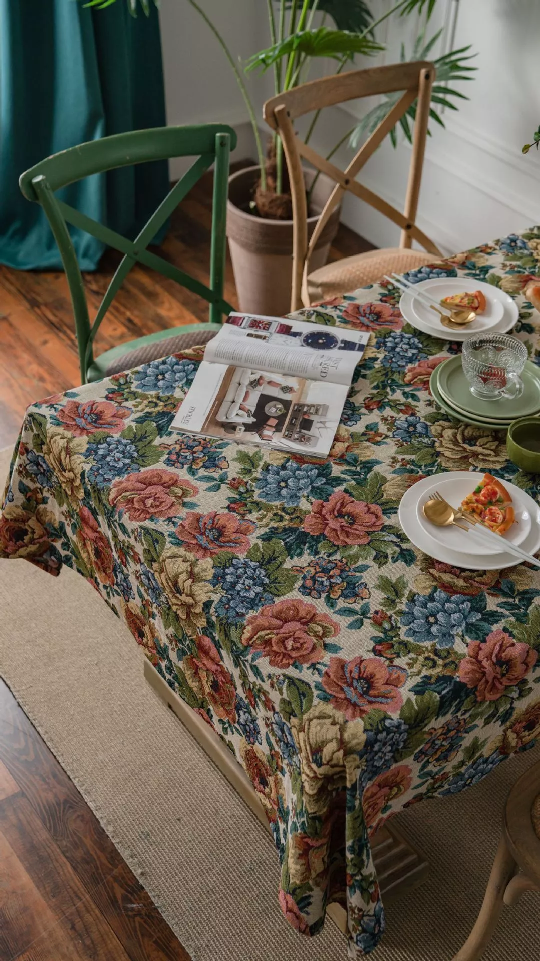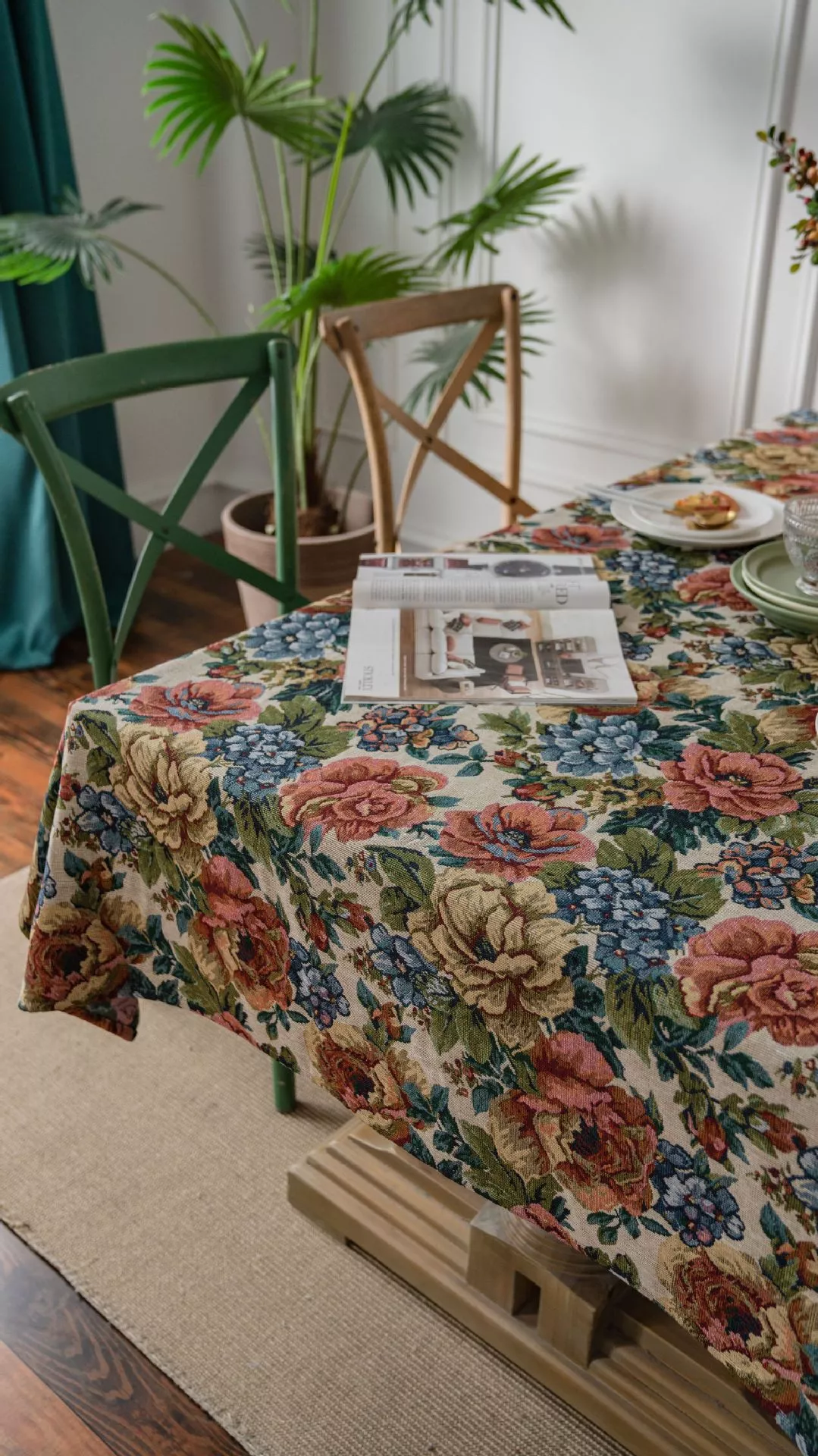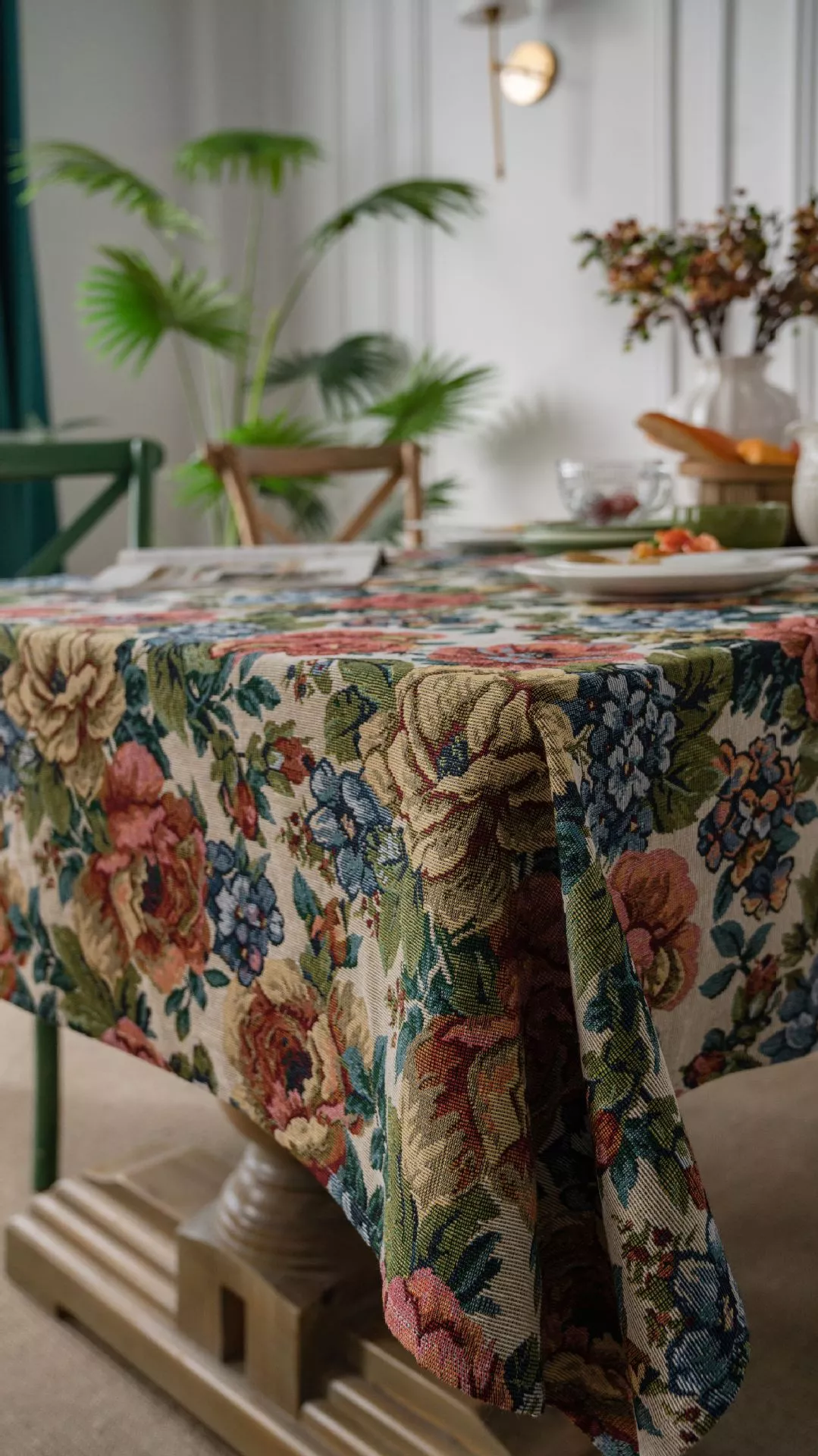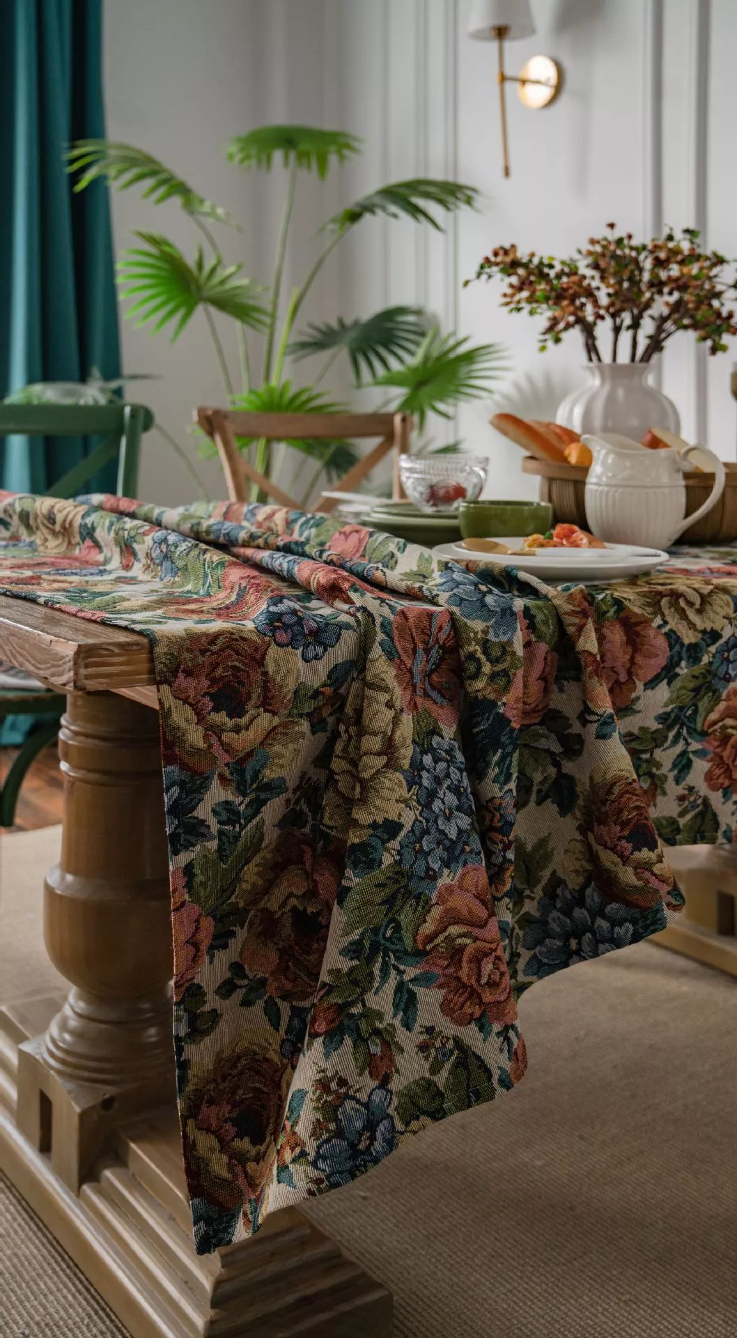 The textured jacquard weave and artistic floral motif make it more than just a table cover—it’s a statement piece that blends classic American charm with modern home aesthetics. The material is thick enough to protect your table from scratches, stains, and dust, while its vibrant design instantly uplifts your space.