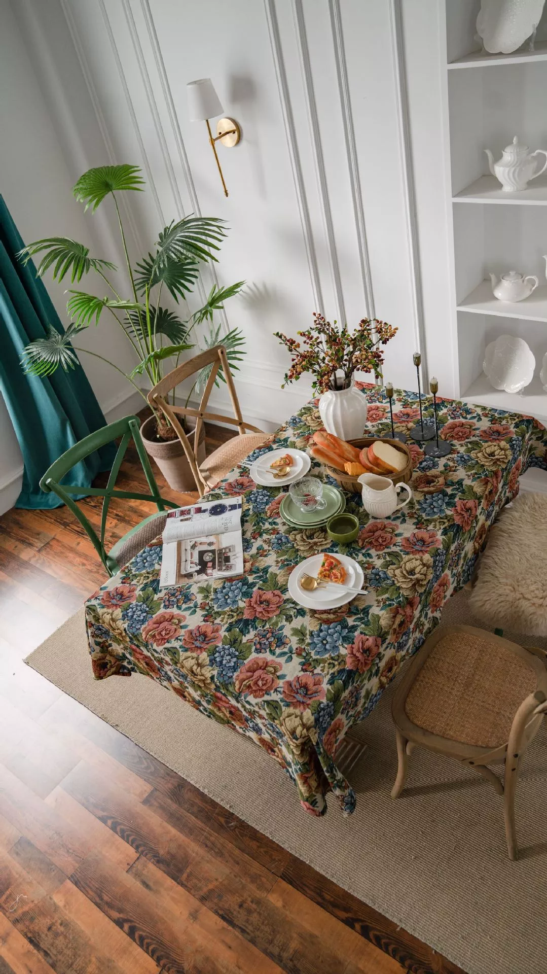 Unlike basic plain tablecloths, this one draws the eye and adds depth to your décor. The floral oil painting effect pairs beautifully with rustic wooden tables, elegant porcelain dishes, or modern glassware. It’s a perfect blend of function and fashion—practical for daily use, yet beautiful enough for special occasions.