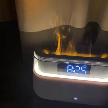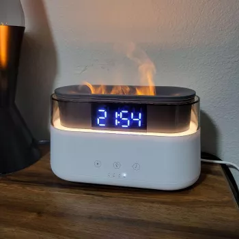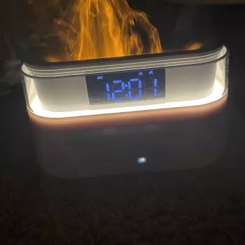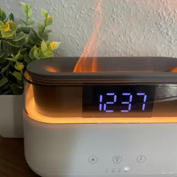 The best thing i've bought in ages this little device does so much yet takes up such little space on my desk its great as a clock but also doubles as an air humidifier essential oil diffuser and colourful lamp plus its super quiet thanks to its ultrasonic mist tech