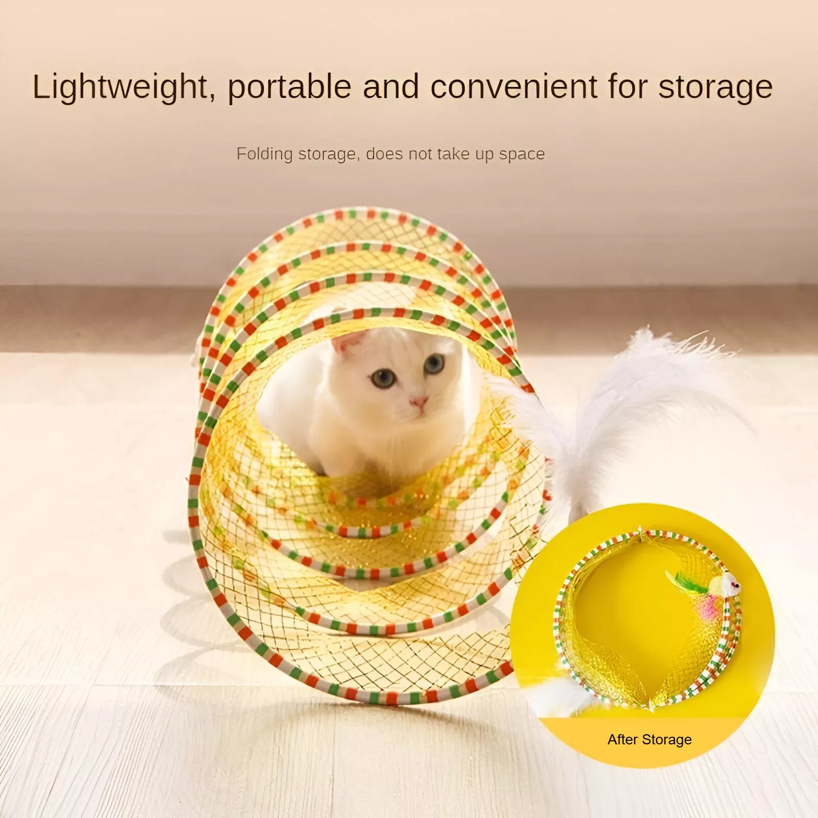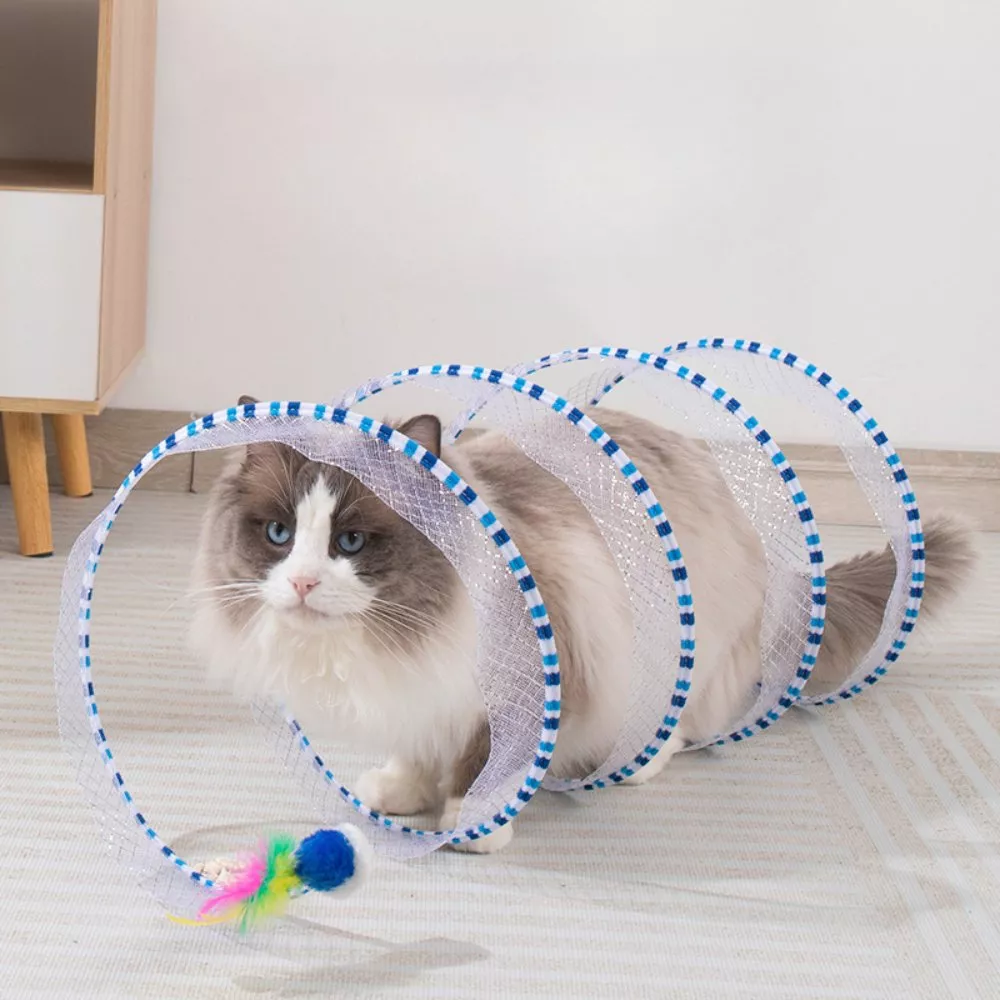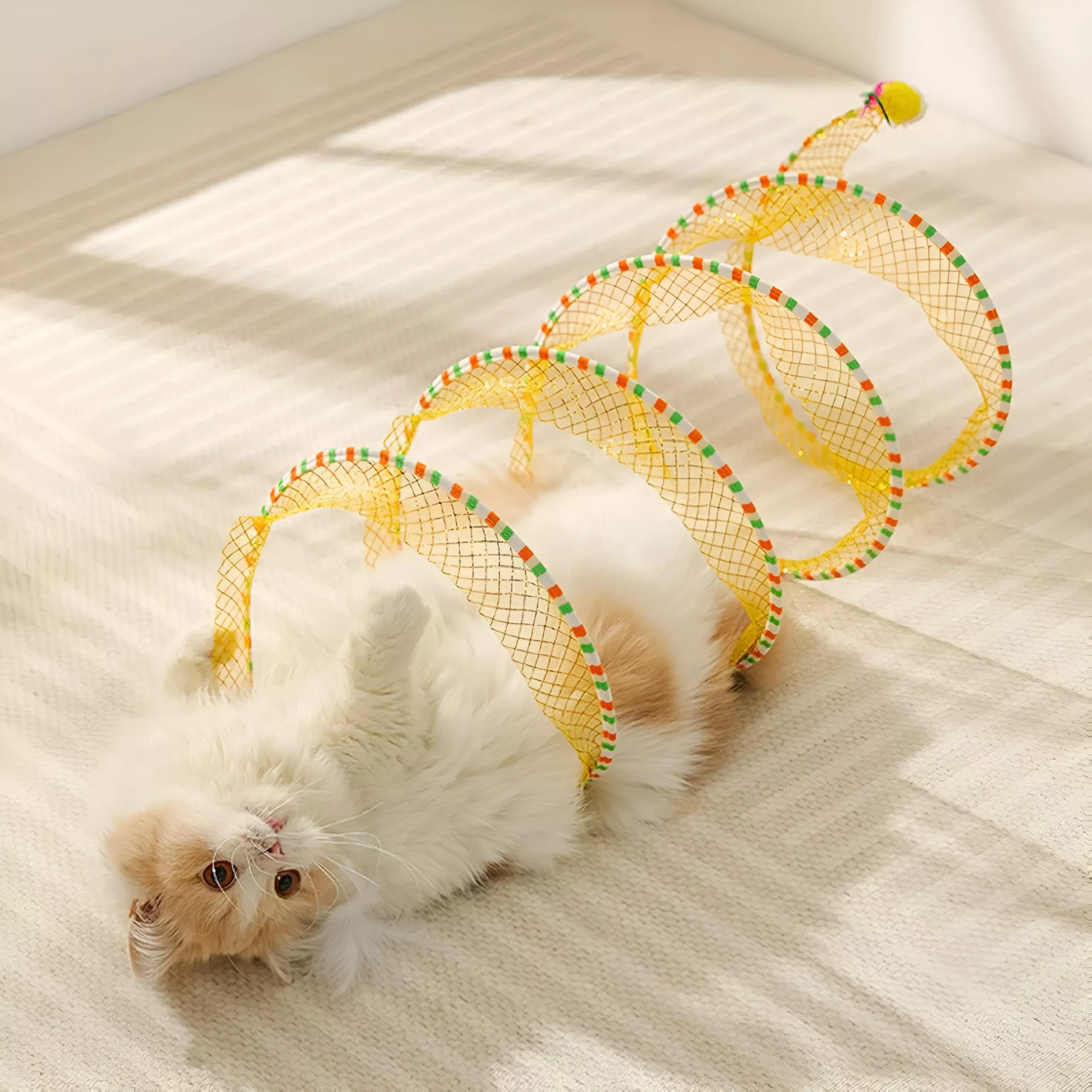 Turn playtime into an exciting adventure for your cat with the Colorful Foldable Cat Tunnel Spiral Toy. Designed for active, curious felines, this vibrant S-shaped coil tunnel promises hours of chasing, pouncing, and hiding fun. Whether your cat loves to dart through tunnels, swat at dangling feathers, or simply lounge inside cozy spaces, this tunnel brings it all in one playful package.