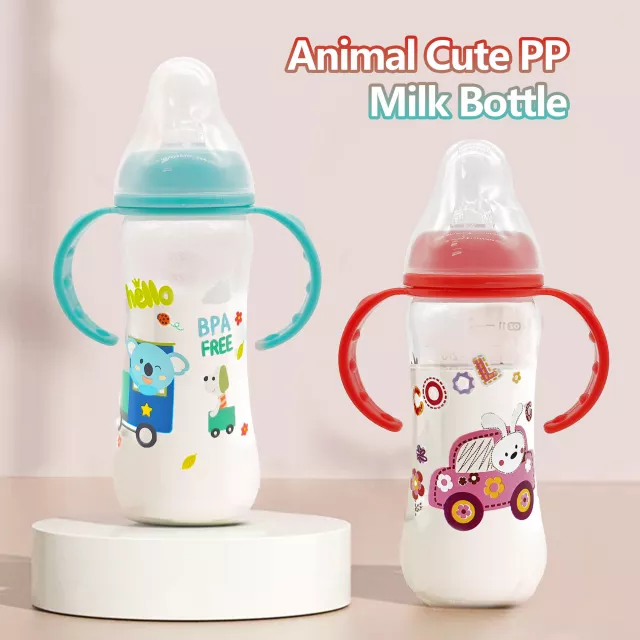 Cute 250ml Cartoon Baby Bottle with Handle