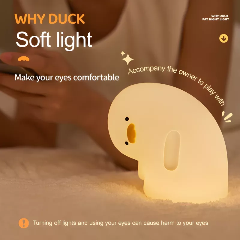 Meet the Cute Duck Night Light, a charming and functional addition to your home or a thoughtful gift for someone special. This adorable silicone lamp is designed to brighten your space with its playful cartoon-inspired design, featuring a cheerful duck with big, expressive eyes and a friendly smile. Whether it’s for a child’s bedroom, a cozy reading nook, or a soothing nightlight, this lamp adds a touch of whimsy to any room.