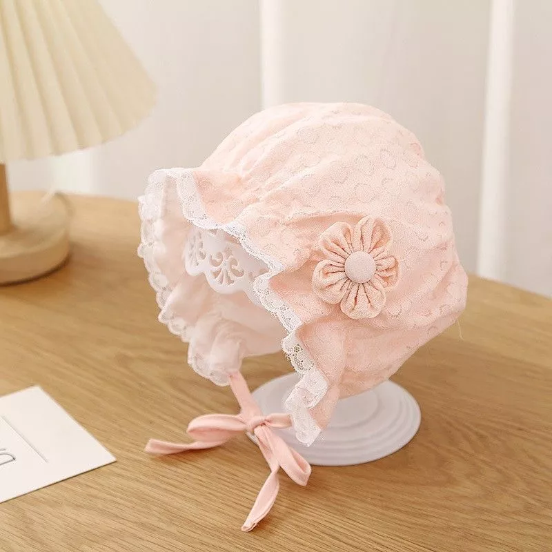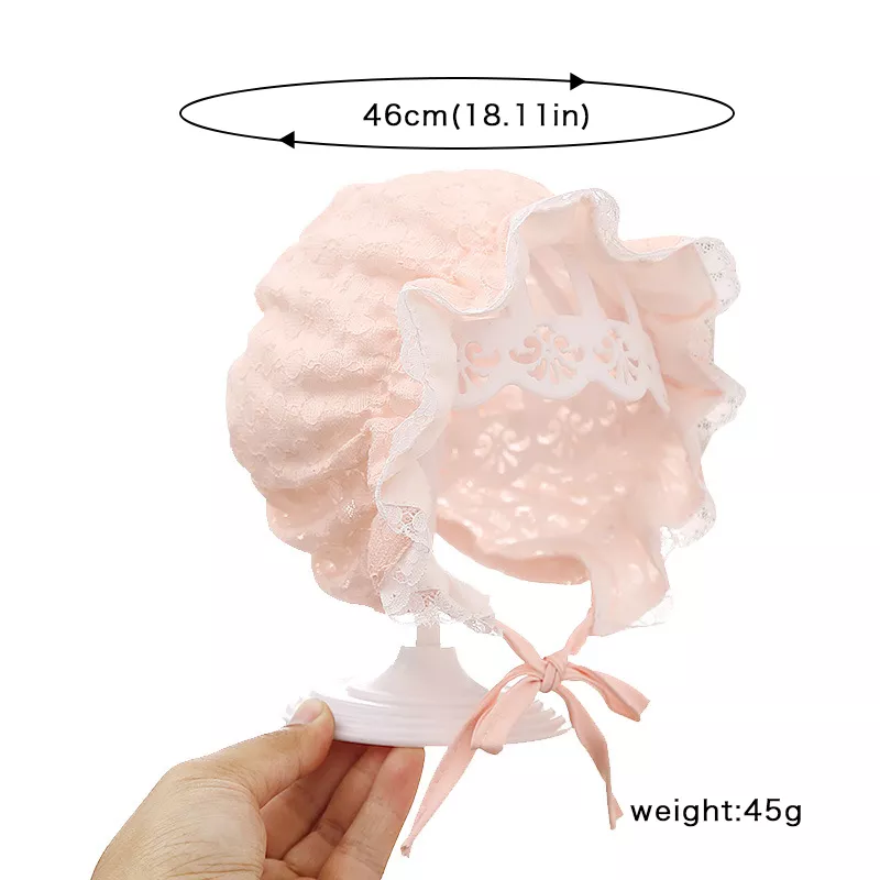 Made from a gentle mix of cotton and polyester, the bonnet is soft to the touch and breathable — ideal for warmer days. It’s lightweight and carefully stitched to prevent irritation on your baby’s sensitive scalp. The adjustable lacing ensures a snug yet comfy fit for head circumferences around 18 inches, providing security without tightness.
