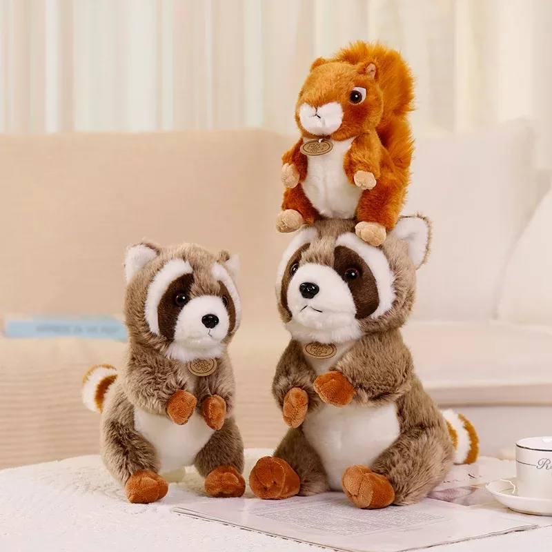 Order today and give the gift of love, comfort, and fun with these plush squirrel and raccoon animal dolls!