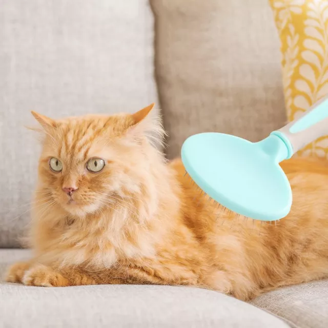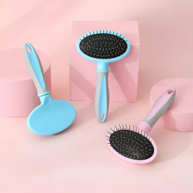 Alright, so here's the scoop. I've had this grooming comb in my pet care arsenal for a few weeks now and honestly, it's been nothing short of amazing. It’s turned out to be one of the best things I've ever bought for my four-legged buddy. The thing that makes this comb stand out is its stainless steel needles. They're super gentle on his skin while being insanely effective at detangling and removing any loose fur he might have. The needles are soft enough not to cause any harm or discomfort but sturdy enough to get through even the toughest knots without breaking a sweat. Another cool feature about this comb is how lightweight it is - like seriously! Despite its durability, it doesn't feel heavy or bulky in your hand which makes those long grooming sessions way less tiring than they used to be with other combs I’ve tried before. But let me tell you what really blew me away – despite giving such a solid performance each time we use it, there are absolutely no scratches or signs of discomfort on my pet's skin afterwards. That’s something hard to find these days! And when we’re all done? Cleaning up couldn’t be easier! No need for special cleaners or scrubbing till your arms ache – just give it a quick rinse under running water and voila! You're good to go again. Oh, did I mention that they come in some pretty rad colors too? Yep! So besides doing an awesome job keeping your furry friend looking sharp, these combs also add a fun pop of color into your pet care routine! So yeah folks, if you're in search of an easy-to-use yet effective tool for maintaining your pet’s coat then look no further because this little gem ticks all those boxes and then some.