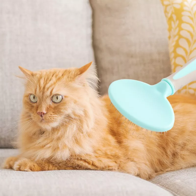 My long-haired cat loves this brush! It not only helps reduce shedding but also prevents painful mats from forming in her coat. She seems to enjoy the massaging effect of the stainless steel needles as well - an added bonus since she usually dislikes being groomed.