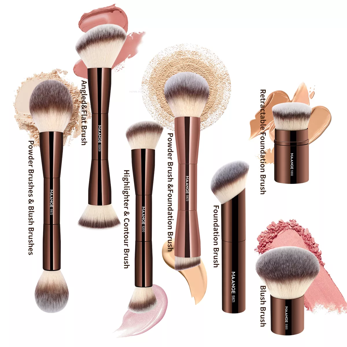 Let me tell you, these double-ended brushes are a total game changer. The synthetic bristles are so soft it's like they're made from clouds or something. They just sweep across my skin with such grace and finesse that applying makeup becomes an absolute delight. And there’s not even a hint of irritation – quite the opposite, in fact. What really gets me jazzed up about these brushes is their dual-ended design. One end rocks an angled head while the other flaunts a flat one - talk about versatility! It's like getting two bangin' brushes for the price of one! Whether I'm going for a sharp contour or just need to blend some eyeshadow, this dynamic duo has got me covered. But wait, there's more! These babies have high-density fibers which means they don't soak up all your product like those other run-of-the-mill tools out there. Instead of wasting half your foundation on the brush itself, you get smooth application every time without burning through your stash too quickly. And let's take a moment to appreciate those ergonomic metal handles shall we? Lightweight but sturdy as heck, they make maneuvering each stroke feel effortless. No matter how intricate or detailed my look needs to be, controlling these brushes feels as easy as pie. Now here comes the cherry on top: these bad boys are cruelty-free! As someone who’s passionate about our furry friends and their wellbeing, knowing no animals were harmed in making my favorite beauty tools makes them all the more special. So yeah folks if you haven’t given these brushes a whirl yet what’re you waiting for? They're truly magic wands in disguise!