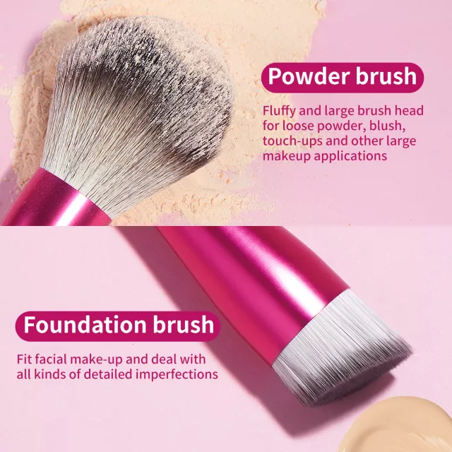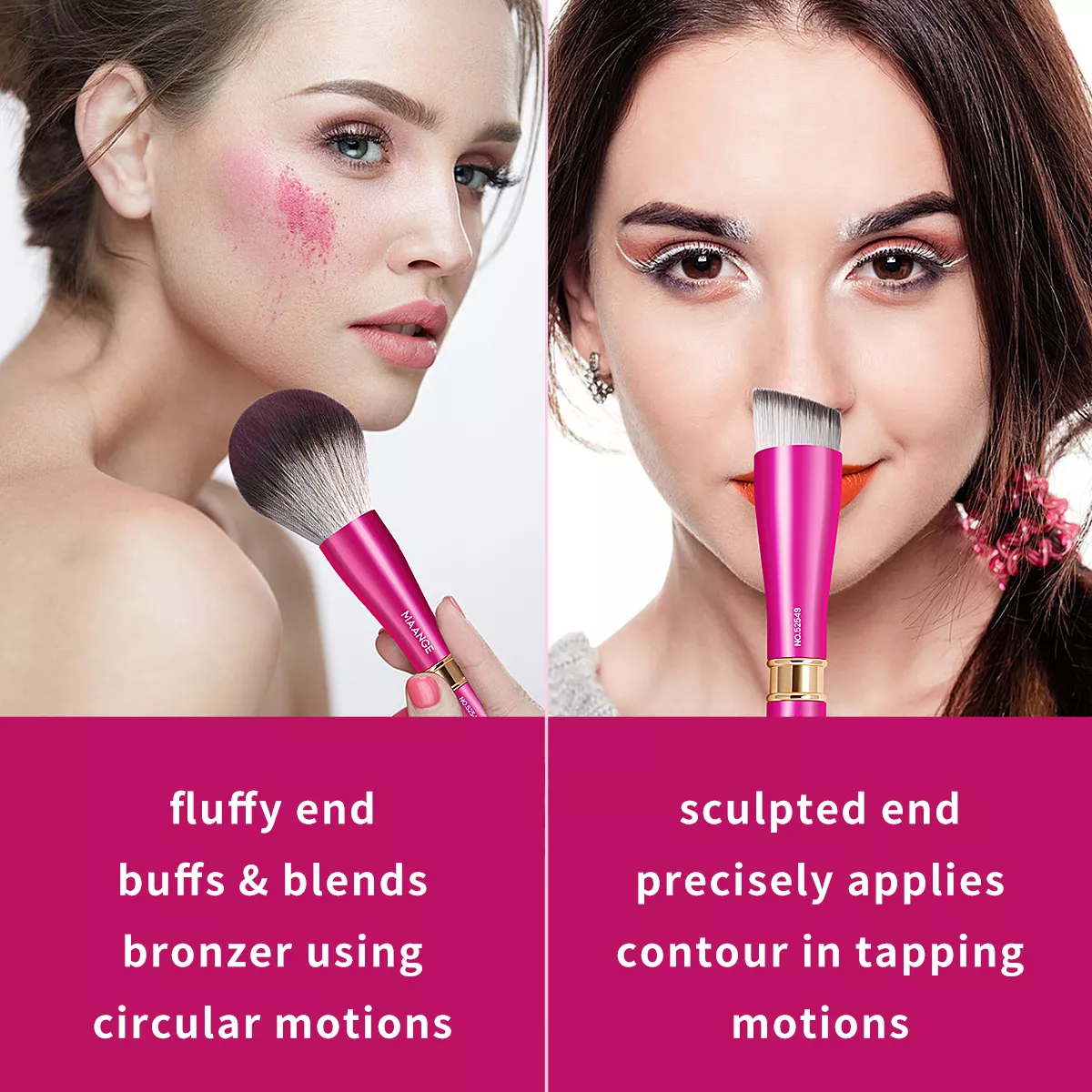 • Dual-ended design for full-face makeup – angled foundation and fan powder brush in one