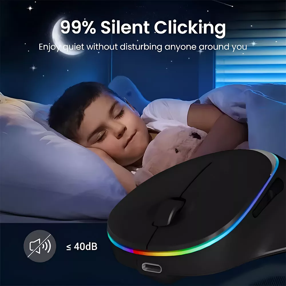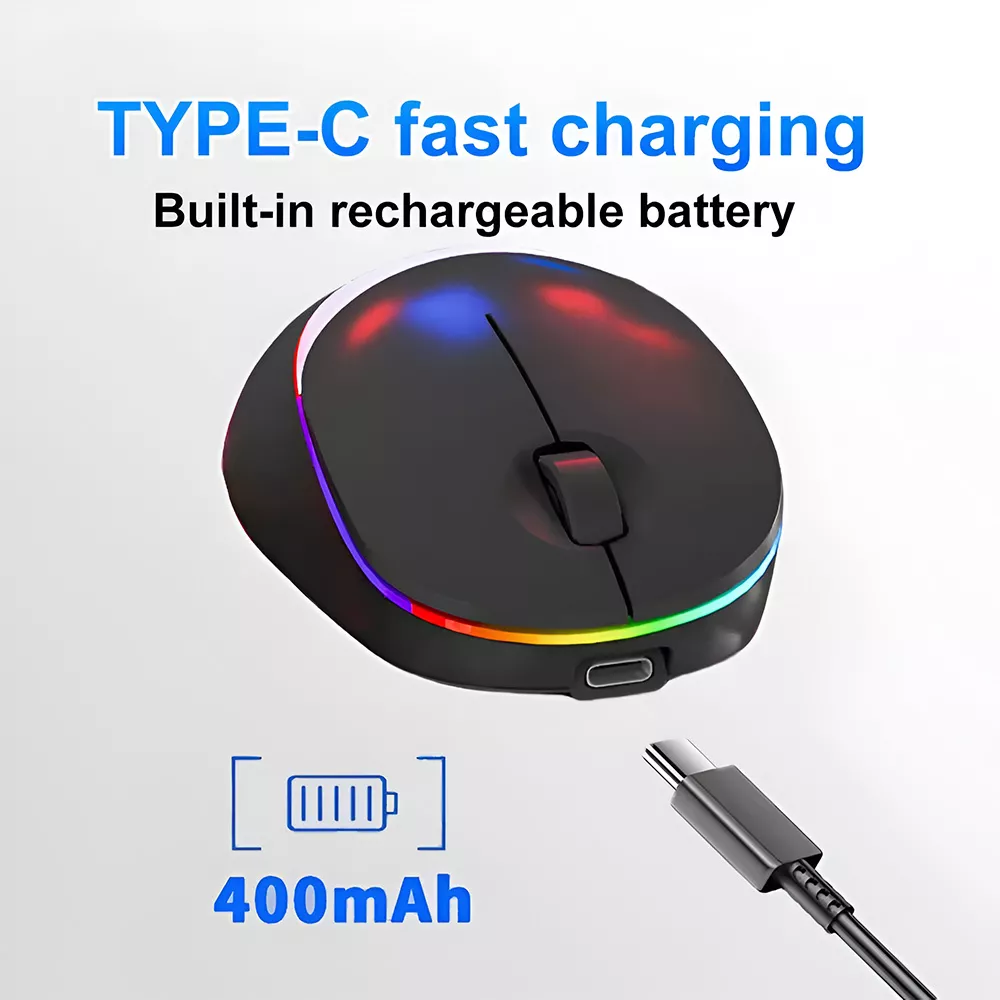 Designed for versatility and convenience, its compact build and ergonomic shape make it ideal for laptops, tablets, and desktops. The built-in LED lighting adds a cool, modern vibe to your setup without being distracting. With ultra-silent buttons, you can click away in libraries, meetings, or late-night sessions without making a sound. The 400mAh rechargeable battery keeps you powered for days, and the USB-C charging port ensures quick and efficient recharging when needed.
