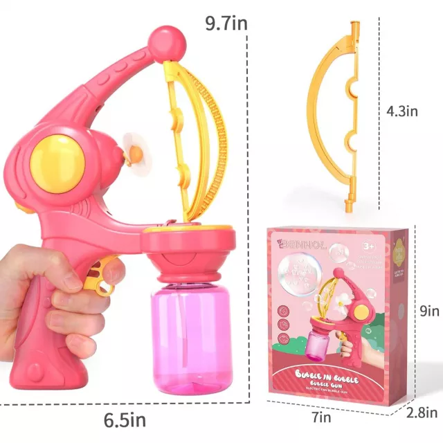 This electric bubble gun is not just a toy; it’s an invitation to adventure and play. With its simple operation and a motor that provides a constant stream of bubbles, kids will never get tired of playing with it. The unique bubble-in-bubble effect adds a touch of magic to every session, turning an ordinary bubble-blowing activity into an extraordinary spectacle. Made from high-quality, durable materials, the gun is safe for young children, giving parents peace of mind while their little ones run around and chase bubbles. The compact design makes it easy to carry, ensuring it’s always ready for action wherever you go.