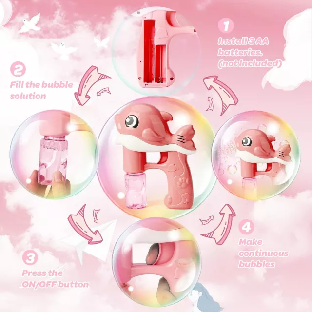 • Automatic Bubble Blowing: The bubble gun shoots a continuous stream of bubbles with the press of a button – no need for manual effort! Simply load it with bubble solution, and it will take care of the rest.