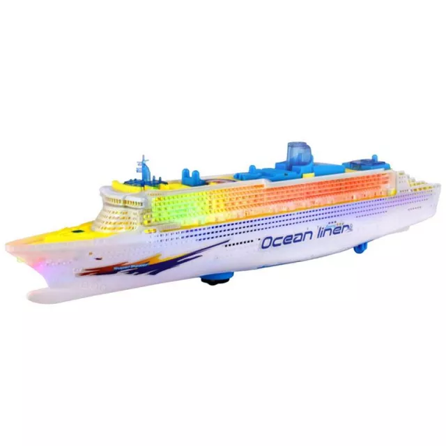 Crafted from high-quality, child-safe ABS plastic, this cruise ship toy is built to withstand active play. With a sturdy frame and smooth finish, it’s both durable and safe for small hands. The toy operates on the ground (not in water), powered by 3 AA batteries (not included), and features a universal wheel that changes direction automatically after bumping into obstacles.