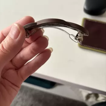 love the neutral color of this barrette it goes with everything and holds my hair securely all day long great find