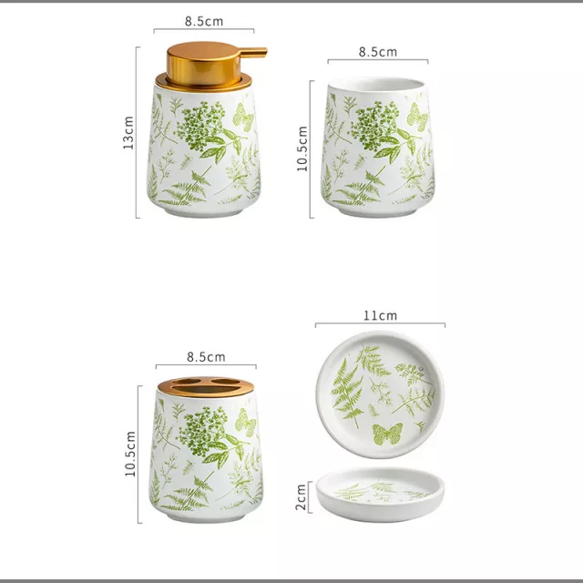 This ceramic bathroom set is best used daily – from freshening up in the morning to winding down at night. The solid ceramic feel and timeless green leaf design make it a standout addition to any modern or nature-inspired décor.