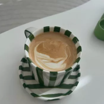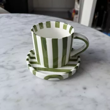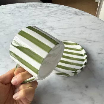 This mug is a gem! The stripes are chic, the porcelain feels luxurious. It's my favorite part of morning coffee.