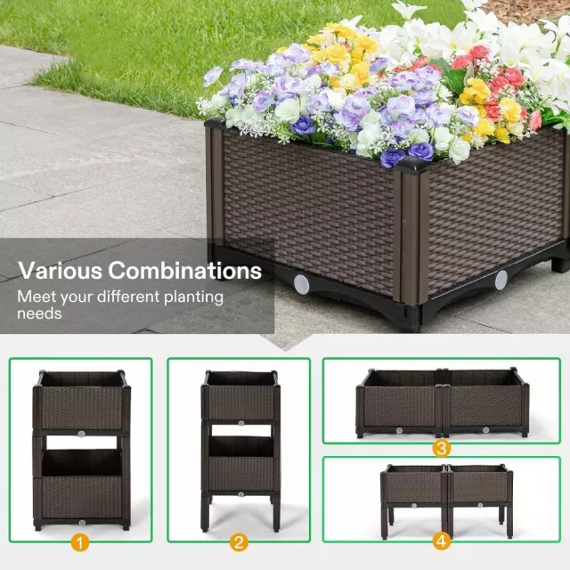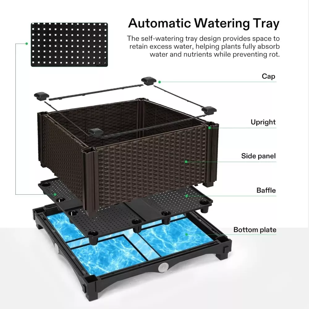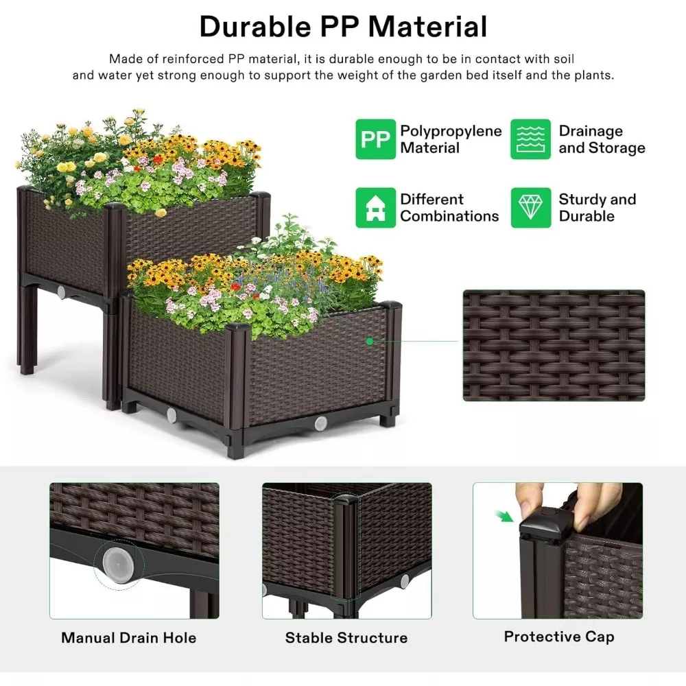 Crafted from durable reinforced plastic in a stylish rattan pattern, this raised garden bed is both lightweight and tough enough to handle changing weather conditions. The built-in self-watering and drainage system ensures that your plants stay hydrated without the risk of overwatering or root rot. With a smart design that keeps your garden elevated, you’ll keep pests away while enjoying easier access—no more back strain from bending over.