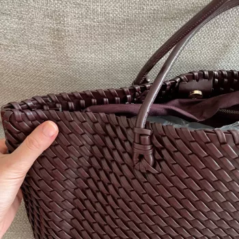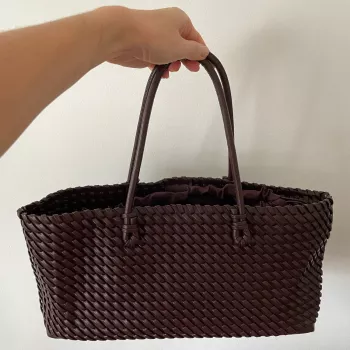 this bag is everything i ever wanted! the woven design gives it such a unique look, and it's super spacious too. perfect for my daily essentials - fits my wallet, phone, makeup kit with room to spare love how effortlessly chic it looks on me!