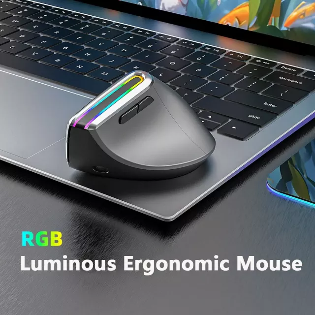 Just got this vertical wireless mouse and it's a dream! The ergonomic design is so comfortable, the RGB lighting is super cool, and it switches between Bluetooth & 2.4G seamlessly - plus no more batteries!