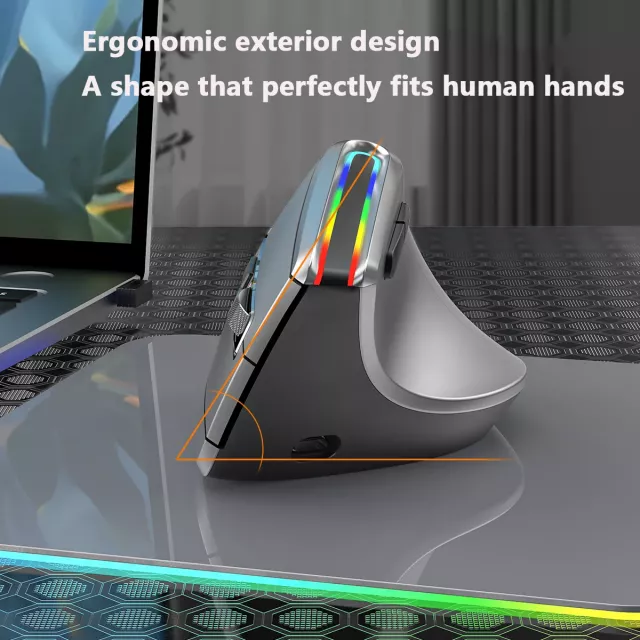 got this vertical wireless mouse recently and i'm loving it!! its shape really helps with wrist pain that i used to get from using regular mice before... also the rgb lights are just awesome... they make everything look cooler lol plus being able to switch between bluetooth & 2.4g is super handy especially when i'm on the go... oh and did i mention that its rechargeable?? say goodbye to buying batteries every few months