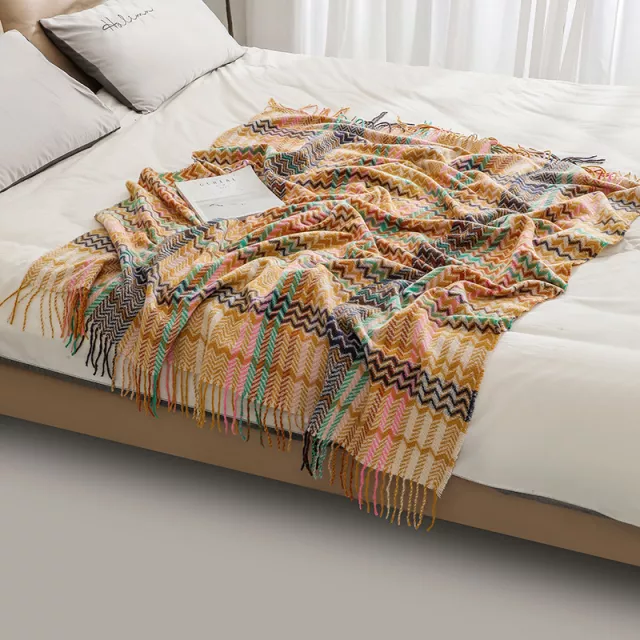 Ethnic Woven Tassel Throw Blanket – Striped Acrylic Shawl for Home & Outdoor