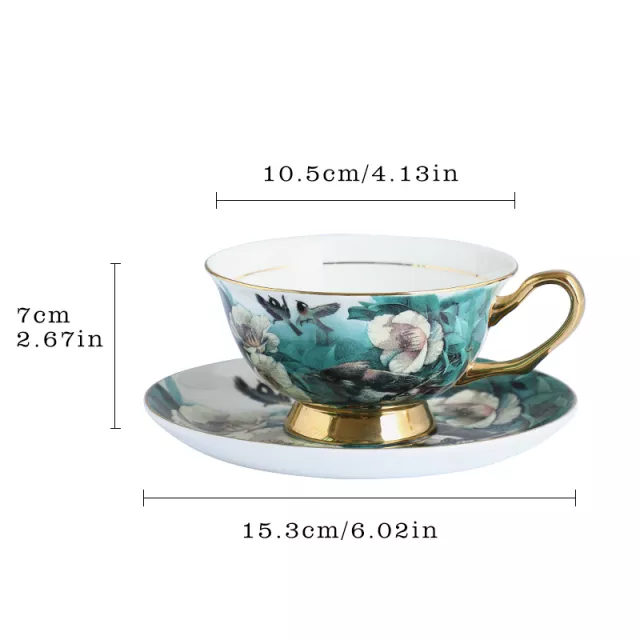 Add a touch of sophistication to your coffee or tea routine with this exquisite bone china set. Order now and enjoy the perfect blend of beauty and function with every sip.