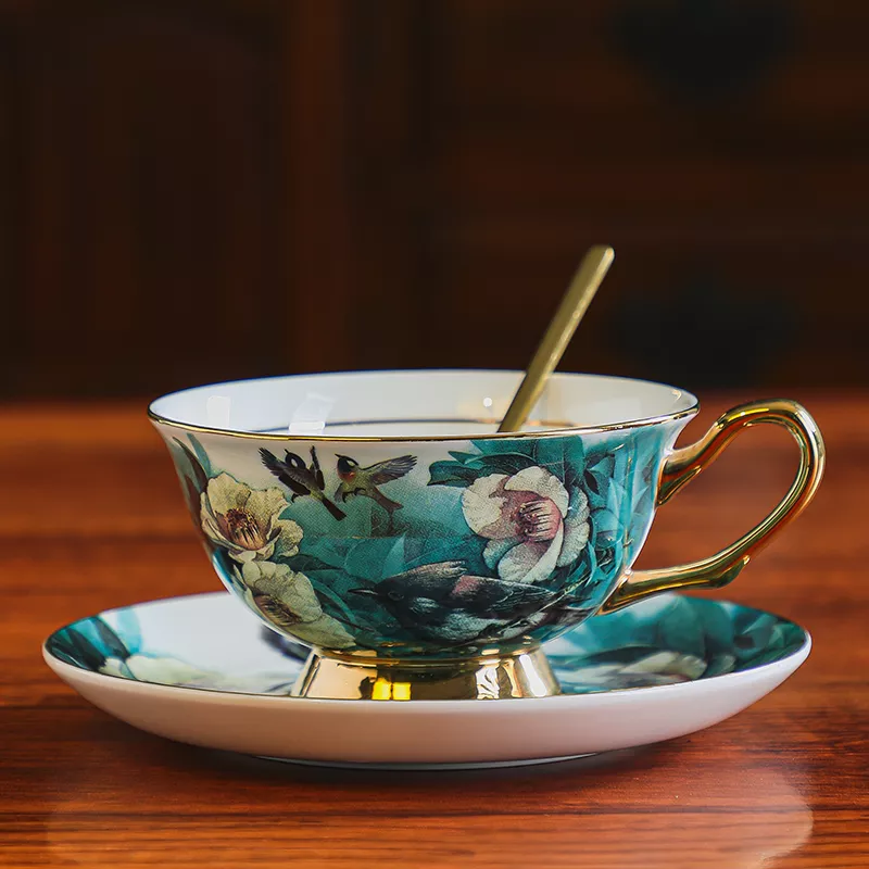 Experience the charm of European style with this beautiful 3-piece bone china coffee cup set. Featuring a delicate rhododendron floral design, this set includes a cup, spoon, and plate, perfect for enjoying your afternoon tea, cappuccino, or latte in style. Its graceful pattern and refined craftsmanship make it a stunning addition to your table decor, blending classic elegance with everyday use.