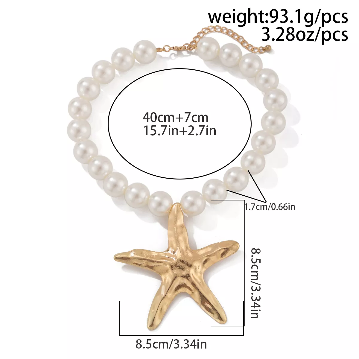 This necklace is crafted with high-quality materials including zinc alloy and simulated pearls. The starfish pendant is oversized, enhancing its dramatic appeal. The link chain design adds a classic punk twist to the otherwise beachy aesthetic, making this accessory a unique blend of steampunk and coastal boho style.