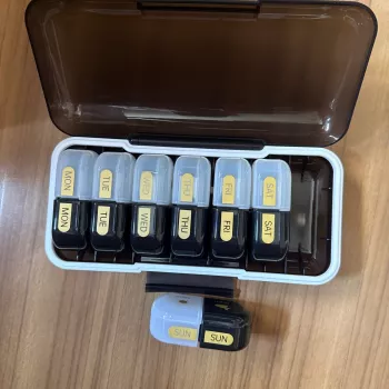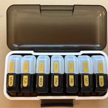 this pill organizer with detachable compartments has made managing my medications so much easier it features clearly labeled am and pm sections for each day of the week which eliminates any confusion during busy mornings or evenings the detachable boxes snap in and out smoothly which is perfect for travel or when i just want to grab a day’s worth of pills the compact size fits neatly in my purse or medicine cabinet the lids close securely preventing spills the durable construction holds up well to daily use overall it’s a thoughtful and practical design that simplifies my medication routine and gives me peace of mind