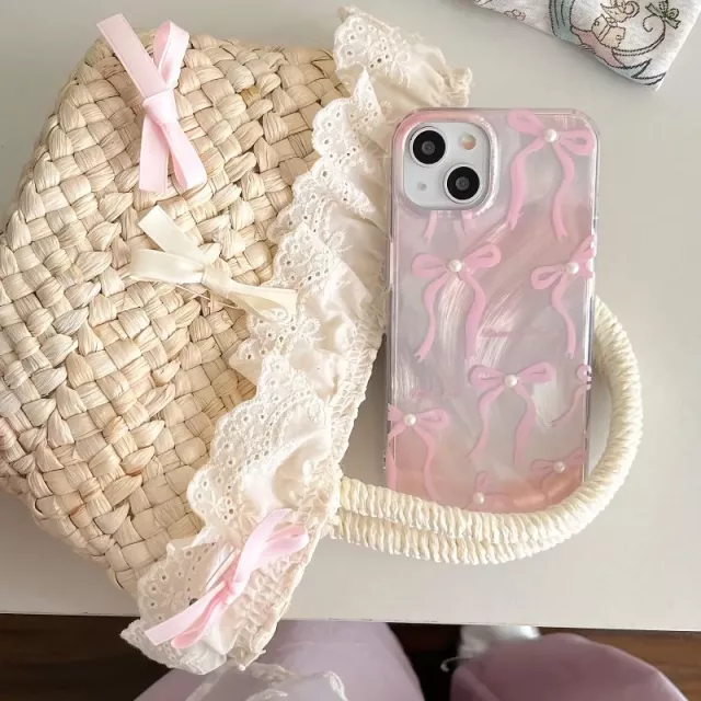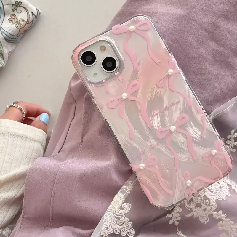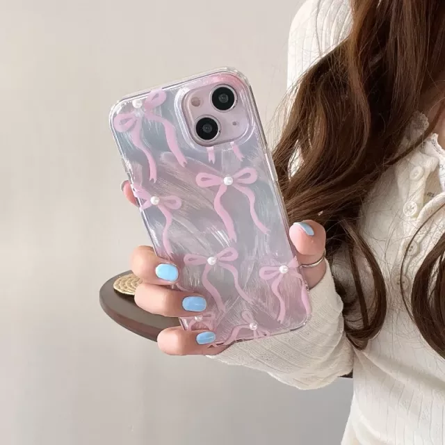 Fairy Pink Bow Pearl Girls iPhone Case – Cute Cartoon Shockproof Cover