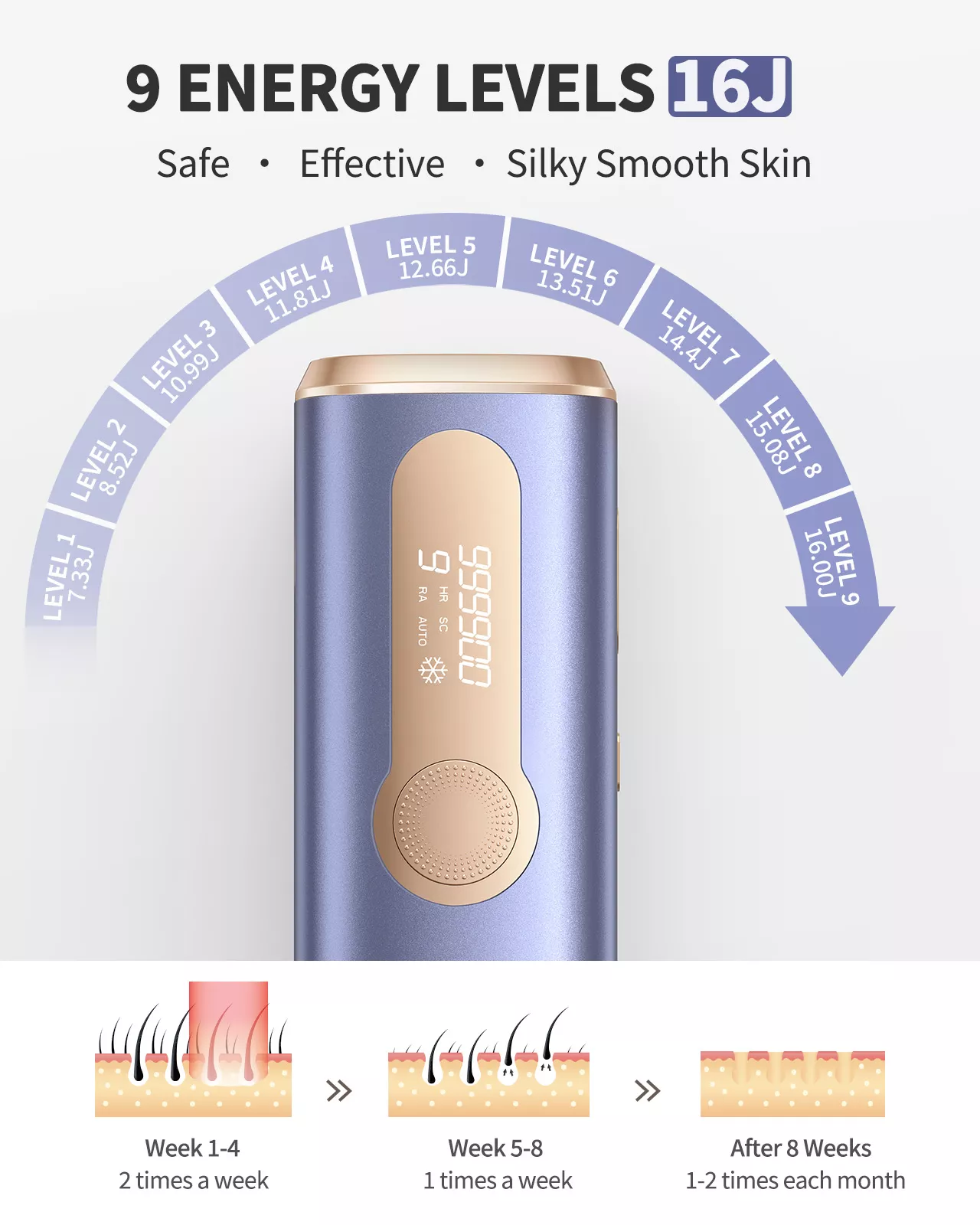 • Painless and Comfortable – Enjoy professional-grade results without the pain. Our IPL technology is designed for gentle, virtually pain-free hair removal.