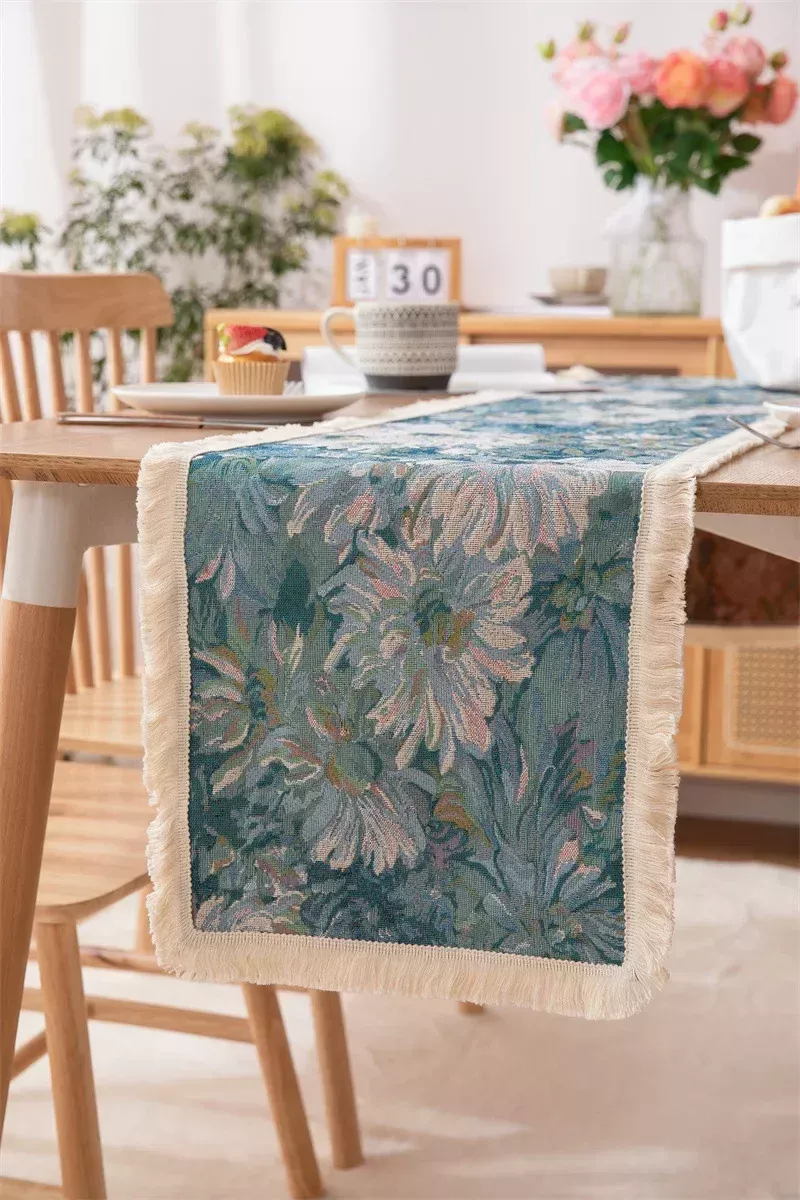 Whether you’re celebrating a holiday, setting a romantic dinner table, or looking to refresh your everyday dining décor, this table runner fits every moment. Its warm tones and soft texture make it ideal for year-round use—from cozy winter gatherings to bright summer brunches. The elegant fringe and floral print blend beautifully into rustic, vintage, and modern interiors alike.