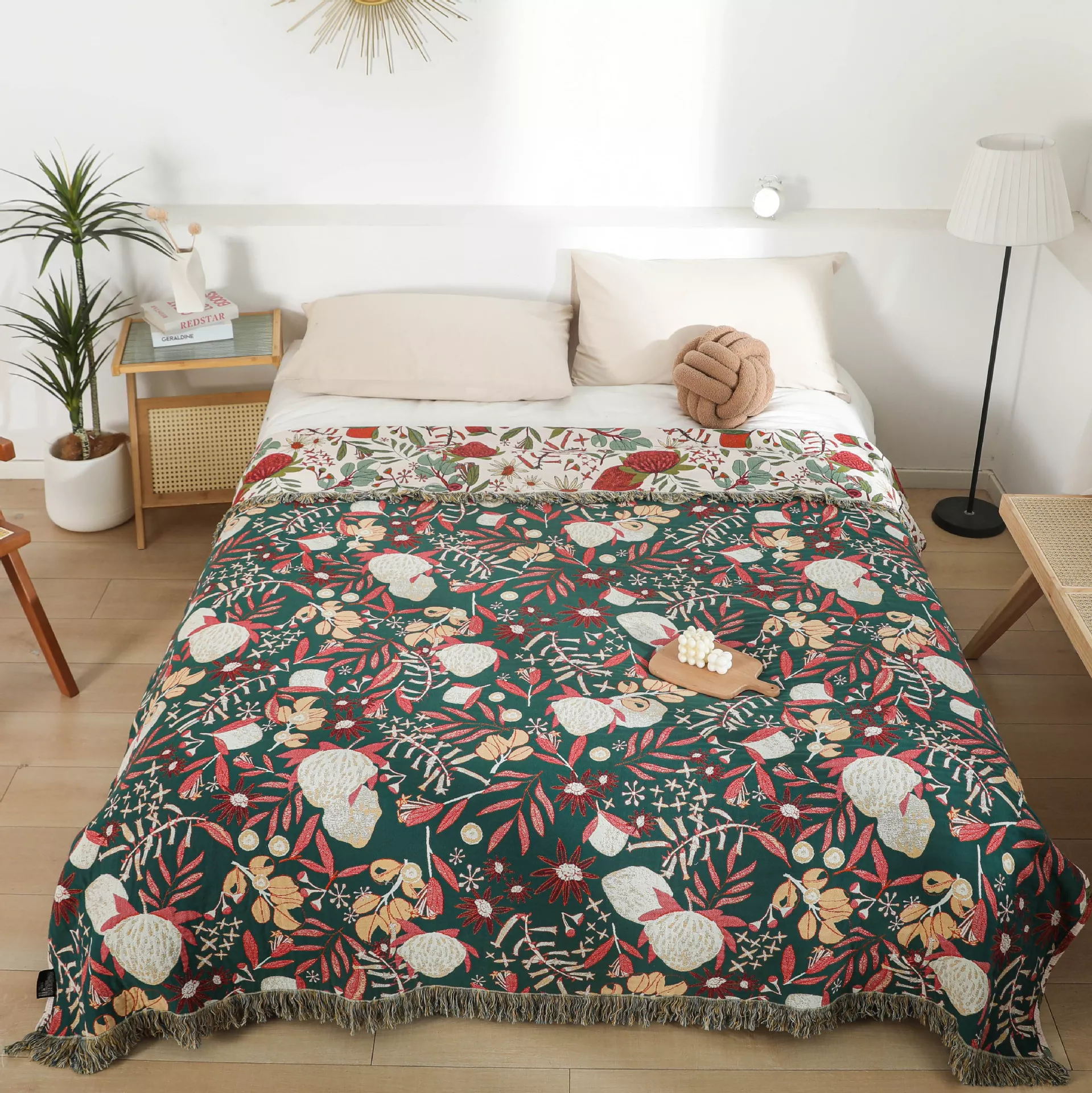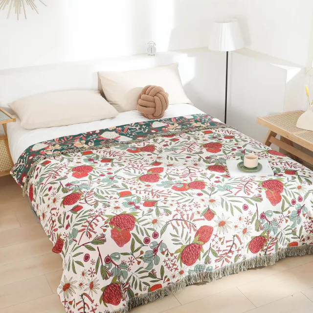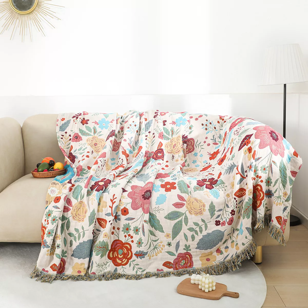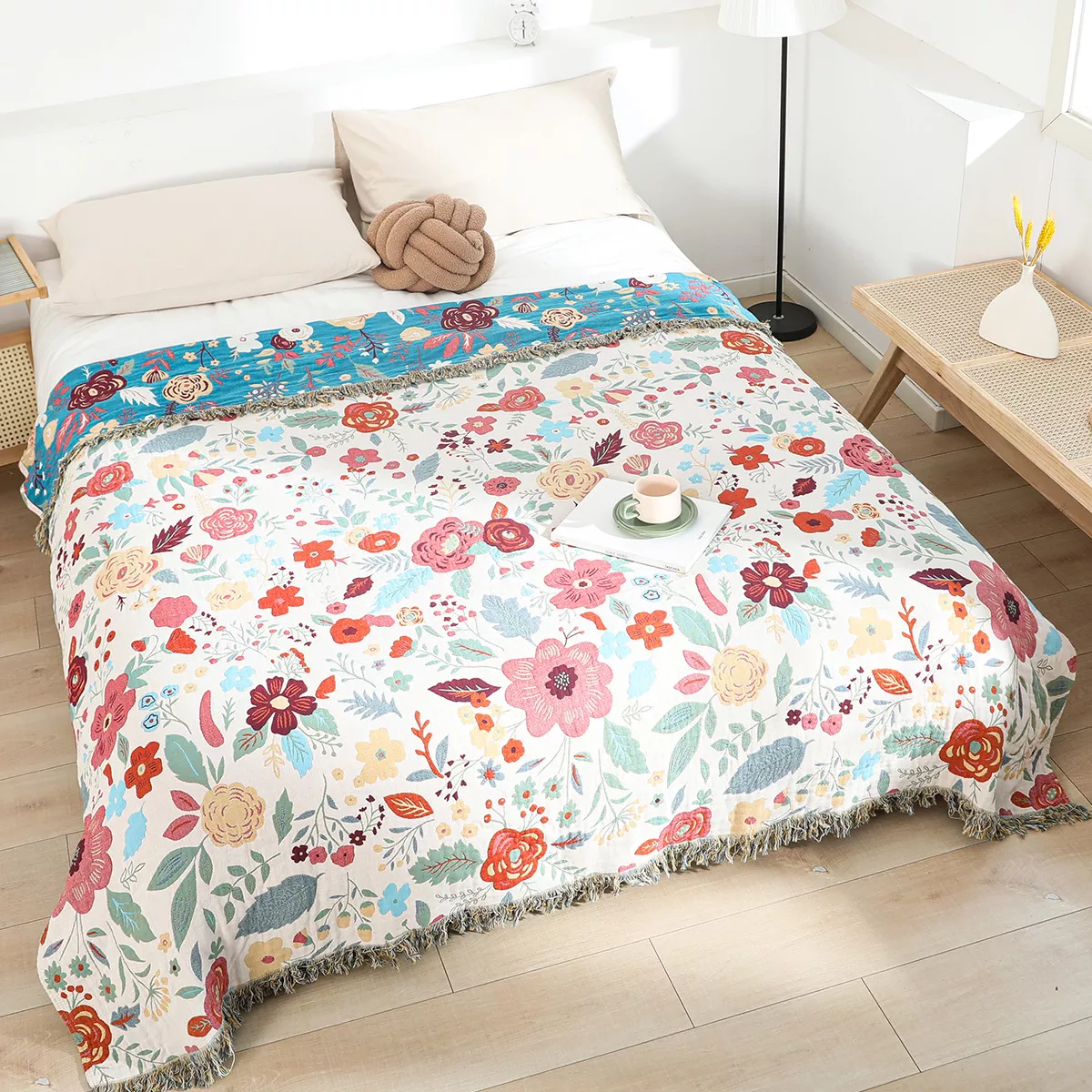 Its double-sided yarn-dyed jacquard construction adds visual interest with a charming floral pattern, while the elegant tassels provide a delicate, bohemian touch. Crafted without harsh chemicals and rated Grade A for quality, this lightweight yet cozy towel blanket is perfect for adults who value comfort with a hint of style. The breathable gauze makes it especially ideal for summer use, though it remains a useful layer all year round.