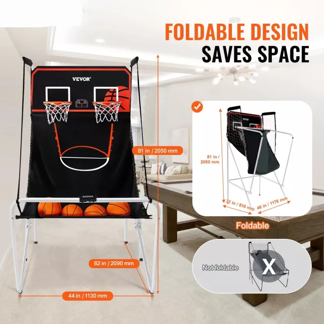 Transform any game night or family gathering into a thrilling basketball showdown with this foldable indoor basketball arcade game. Designed for two players, it offers fast-paced, competitive fun right in your living room or playroom. Perfect for kids and adults alike, this game invites you to challenge your skills and race against the clock in a variety of exciting modes.