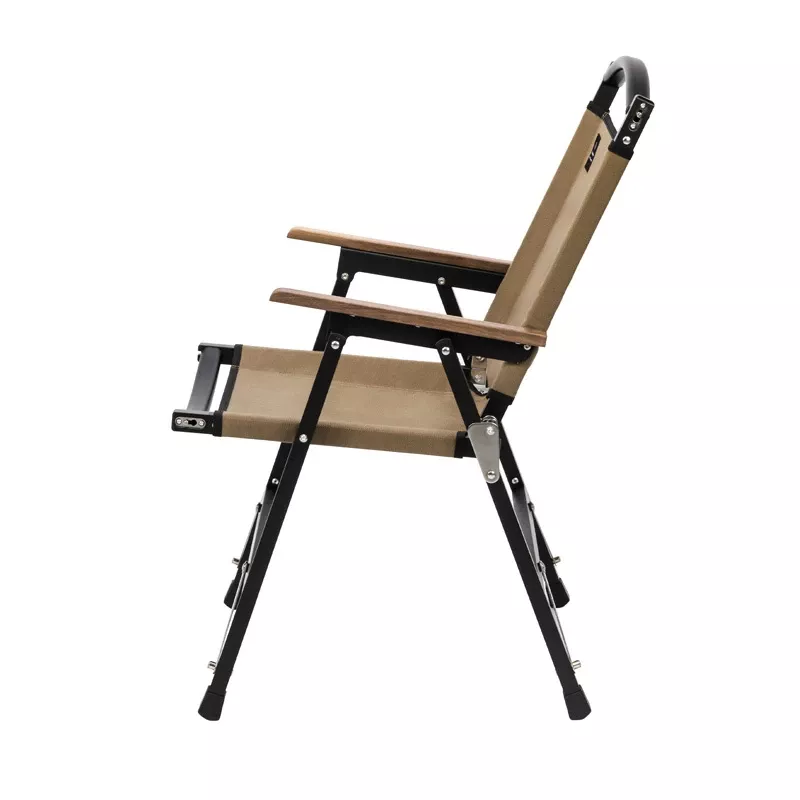 Gone are days where I had to deal with bulky and heavy chairs during my outdoor trips. This chair is a breeze to carry around, thanks to its lightweight aluminum alloy frame. The seat is made from a durable polyester-cotton blend that's soft and comfy for extended sitting. And did I mention how stylish it looks? The black walnut armrests add an elegant touch!