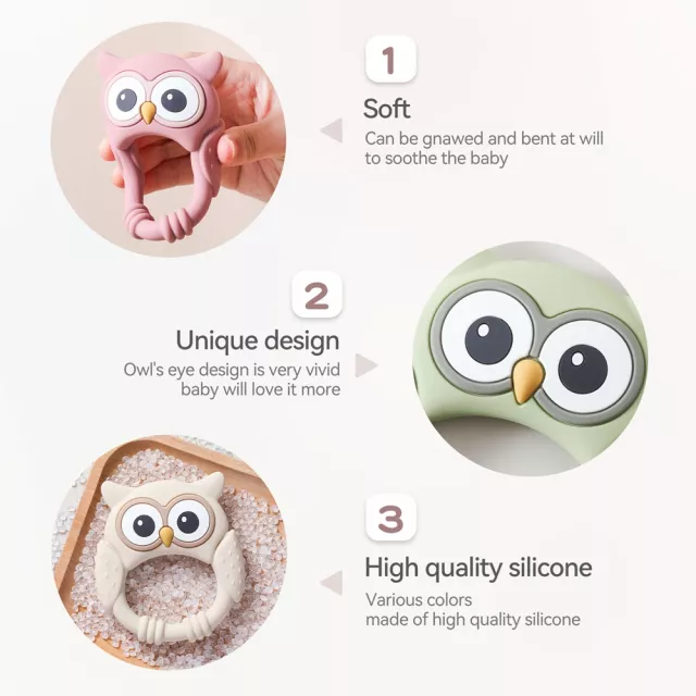 Ease your baby’s teething discomfort with the adorable Silicone Teether Owl Rattle. Designed for babies aged 0-12 months, this fun and soothing toy helps alleviate teething pain while also engaging your little one’s senses. Made from food-grade, non-toxic silicone, it’s gentle on tiny gums and provides a safe and enjoyable way for babies to relieve teething pain.
