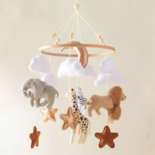 This mobile is the perfect way to add a touch of warmth and charm to your baby’s nursery while keeping them entertained and soothed. The vibrant colors and friendly animal faces are visually stimulating, making it an ideal addition to any infant’s crib. Whether it’s for playtime, nap time, or creating a cozy space, this mobile is designed to be both a decorative and functional nursery accessory.
