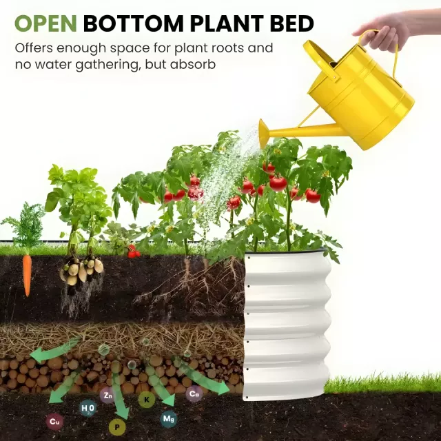 The durable galvanized steel construction is built to withstand all seasons, resisting rust and corrosion even under sun, rain, or snow. Thanks to its modular design, you can assemble it into 31 different shapes to perfectly fit your yard or garden layout. The open-bottom design helps prevent water buildup and promotes strong, healthy root growth by allowing direct access to the nutrient-rich soil below.