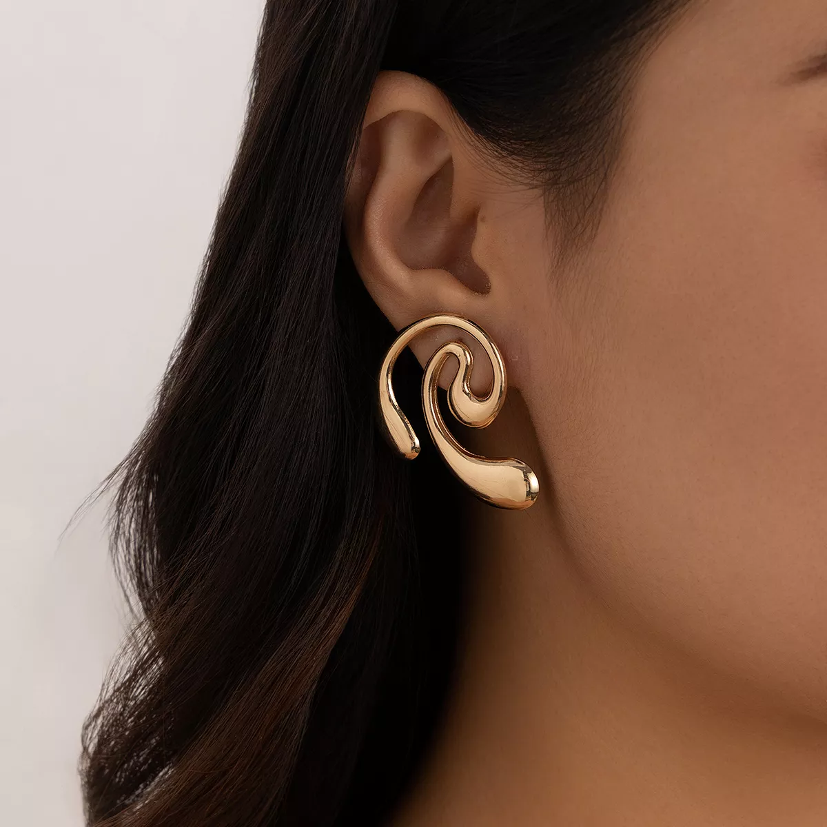The annular, hollow shape creates an eye-catching silhouette, while the irregular smooth finish adds an artistic touch that feels anything but ordinary. Available in two timeless tones — rich gold and classic silver — these studs are a versatile choice for lovers of vintage, goth, punk, and contemporary aesthetics. Lightweight and comfortable, they’re ideal for all-day wear without compromising on style.