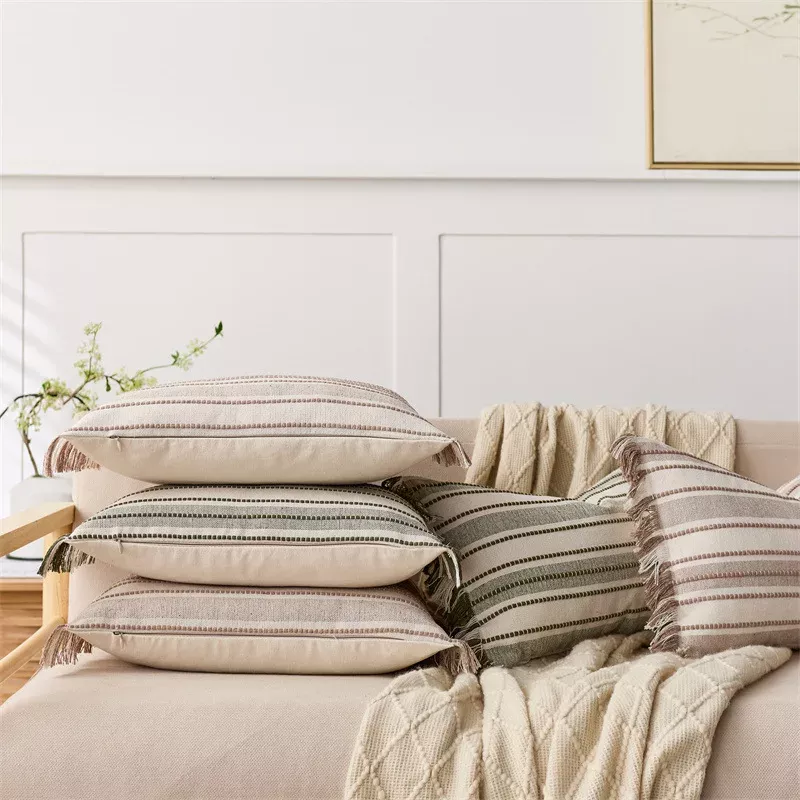 Bring texture, warmth, and understated elegance into your home with our Geometric Stripe Jacquard Cushion Cover. Inspired by the Japanese Wabi Sabi philosophy of finding beauty in imperfection, this decorative pillowcase is where minimalist design meets cozy comfort. Whether it’s for your sofa, bed, favorite chair, or car seat, this linen-cotton blend cover adds a refined touch to any space.