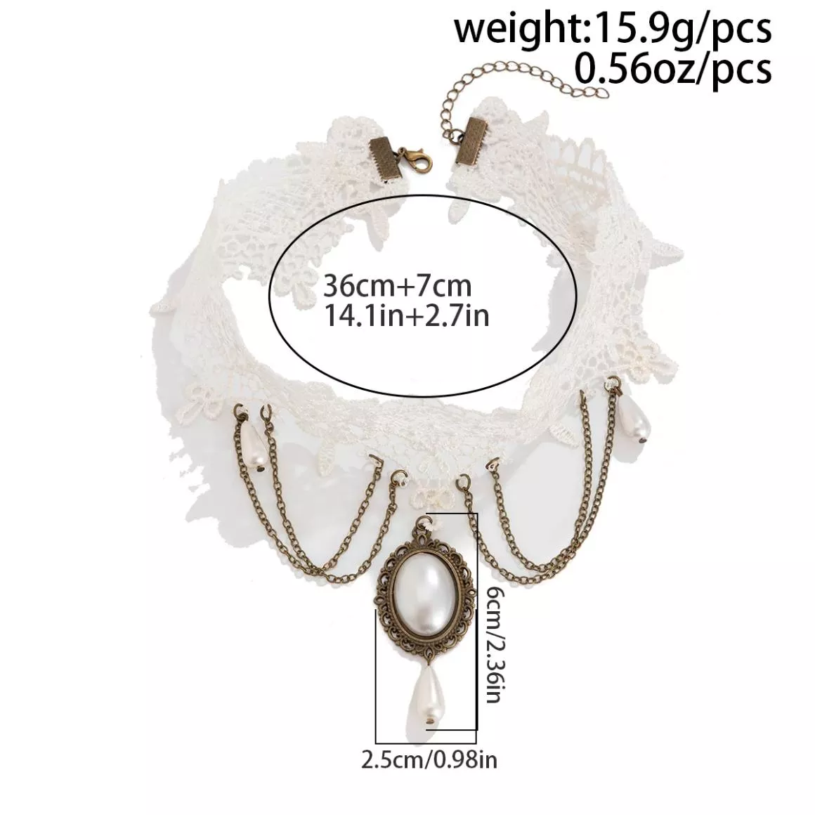 This choker combines vintage charm with a modern neo-gothic aesthetic. The soft lace lays comfortably along the clavicle, while the oval-shaped simulated pearls and detailed iron alloy cross create a sophisticated, slightly dramatic look. Designed especially for women who love romantic, dark, and vintage-inspired fashion, this piece is a must-have accessory for any unique wardrobe.