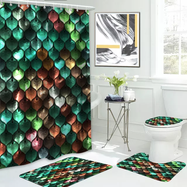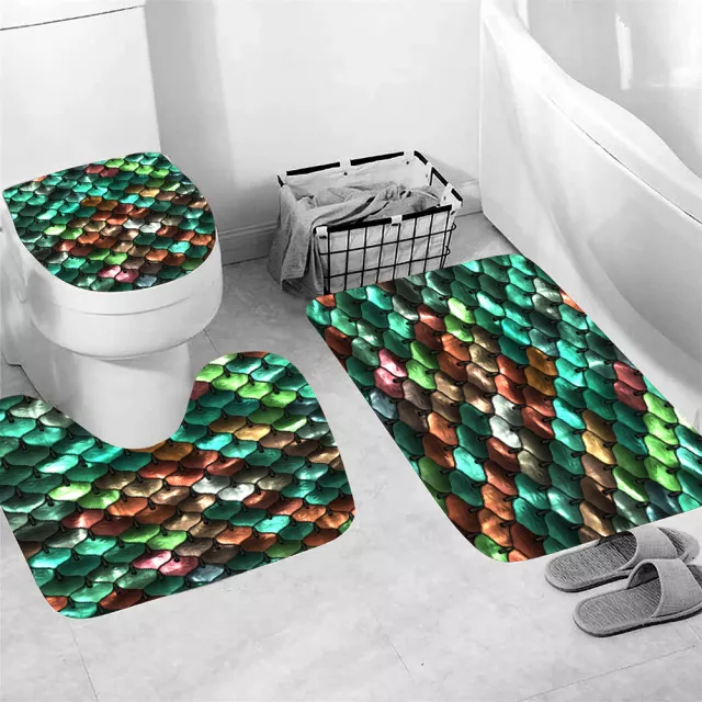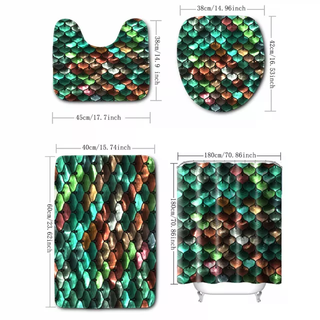 I was skeptical about buying a shower curtain online, but this one exceeded my expectations. The green scale print is vibrant and refreshing. It has completely transformed my bathroom into a tropical paradise. Plus, the mats are super soft and cozy underfoot.